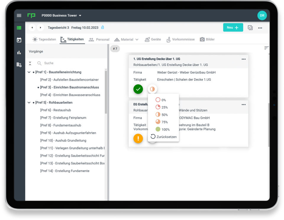 Precise scheduling and seamless documentation are essential for successful construction projects. The seamless connection of our construction documentation module mydocma RP to the scheduling software Asta Powerproject creates optimal synergies: a plugin-based interface connects both systems, enables dynamic construction plan adjustments based on data recorded on site and ensures that the documentation is always up-to-date.