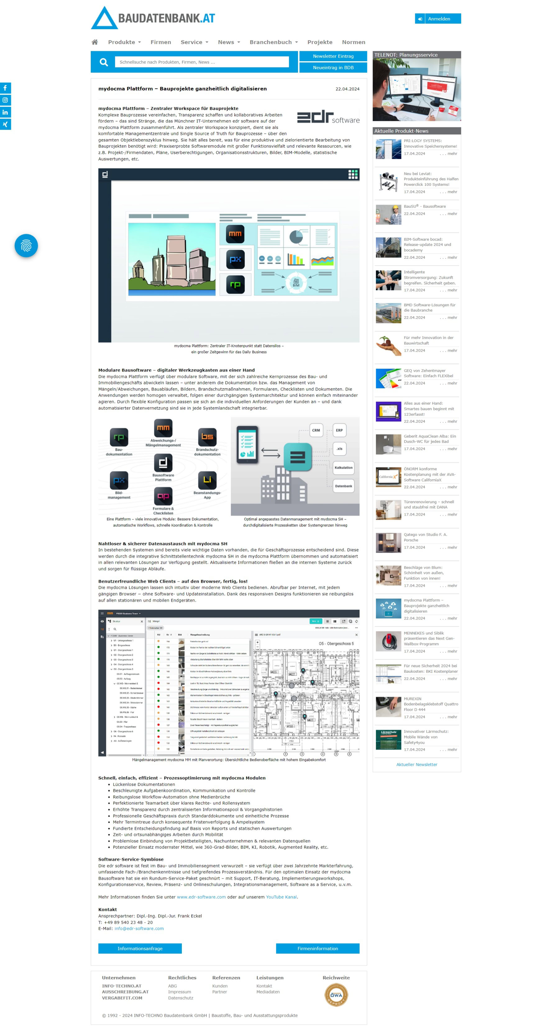 Baudatenbank.at – Spezial-Newsletter SOFTWARE FÜR DAS BAUWESEN, KW 17/2024